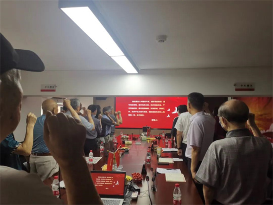 會上,全體黨員重溫入黨誓詞。