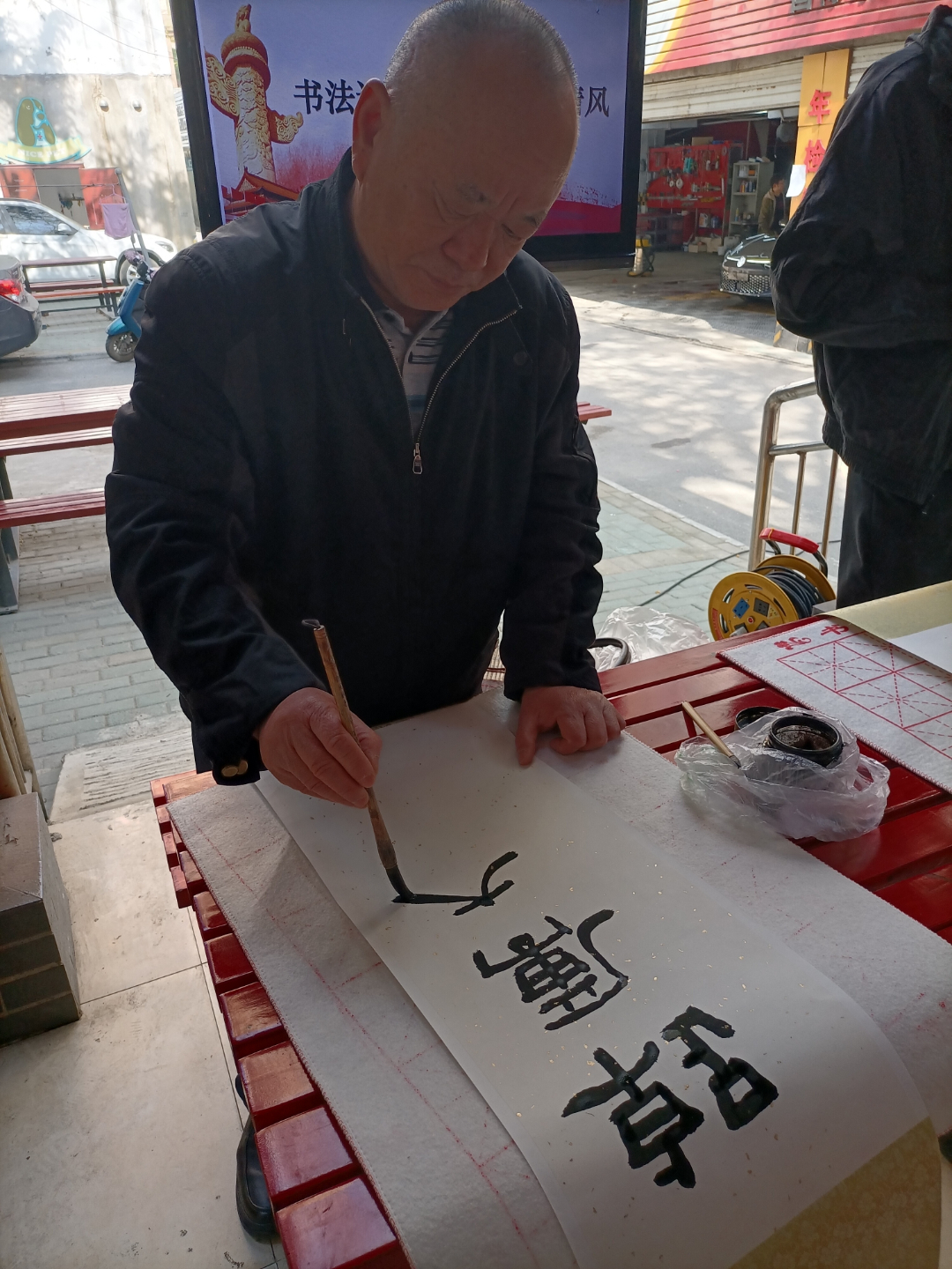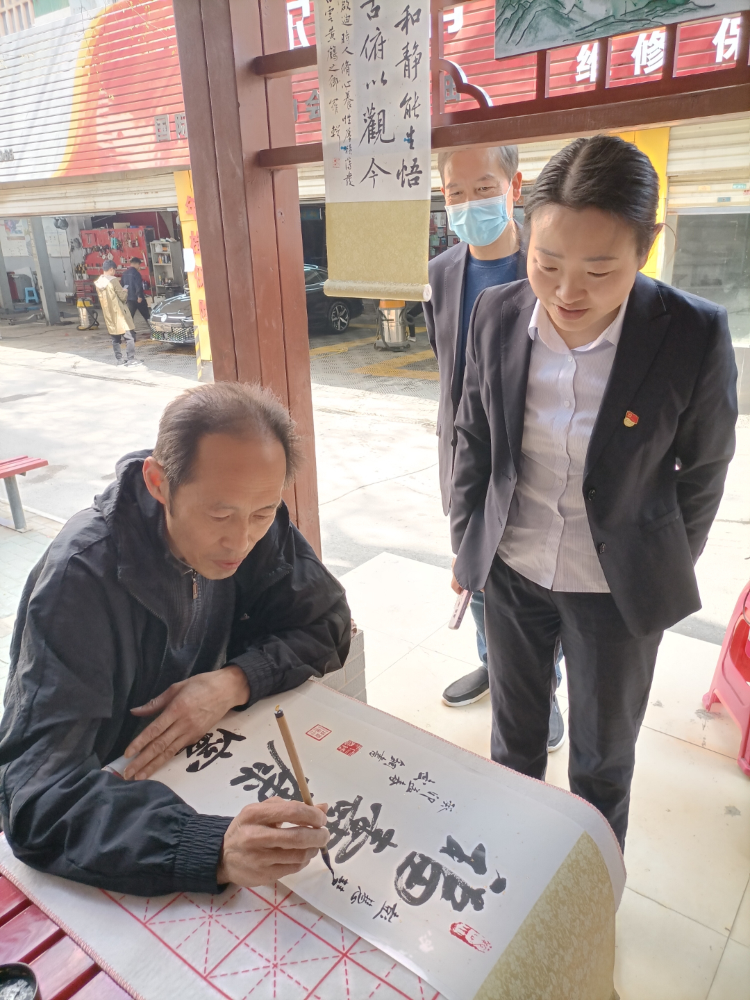 學(xué)習(xí)交流結(jié)束后,轄區(qū)兩名書(shū)法家以“書(shū)法話廉潔·妙筆揚(yáng)清風(fēng)”為主題書(shū)寫了黨風(fēng)廉政書(shū)法作品。清風(fēng)亭里,黨員代表們一邊品味書(shū)法,揚(yáng)崇廉尚潔之風(fēng);一邊觀棋對(duì)弈,育閑情雅趣之德。
