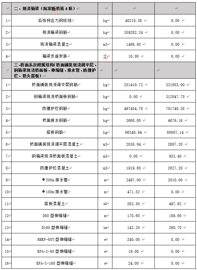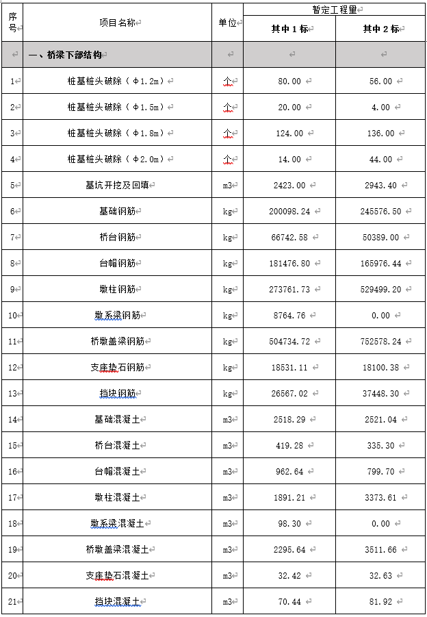 本次橋梁工程勞務招標作業清單詳見下表: