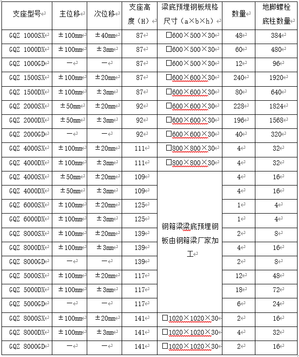 1.2 招標內容:本次橋梁球型支座采購招標內容詳見下表。