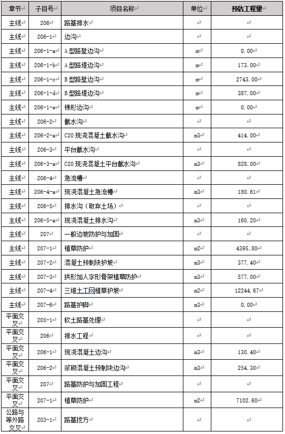 本次路基排水及防護工程分包作業清單詳見下表: