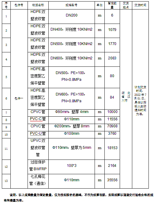 1.2 招標內容:本次管材采購招標內容詳見下表。