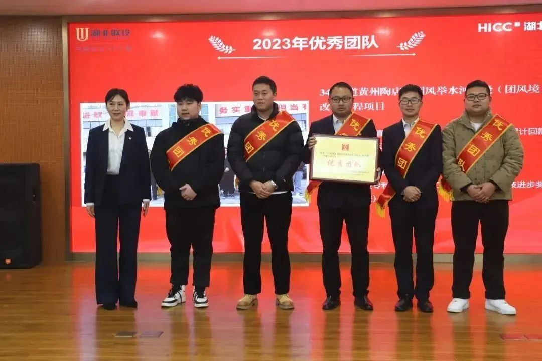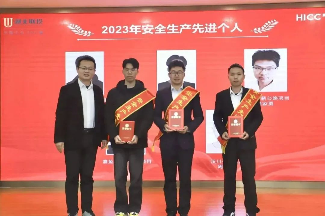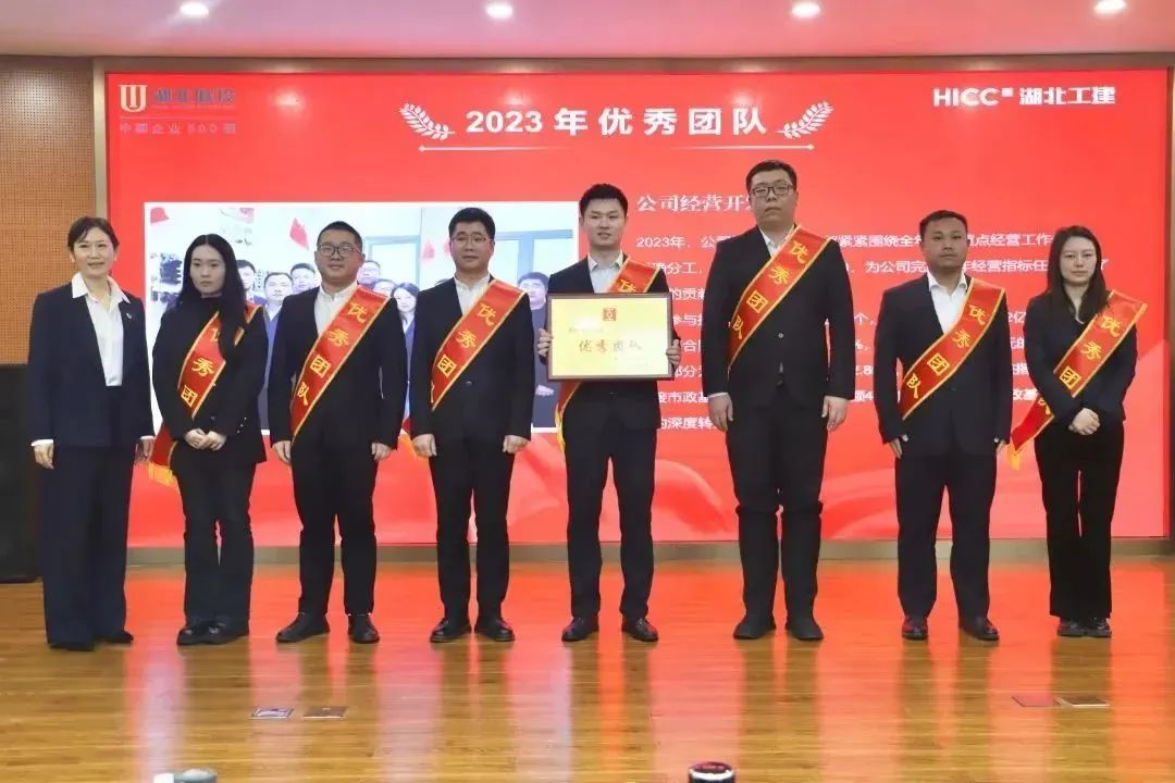 胡超宣讀了《關于表彰湖北工建基礎設施建設有限公司2023年度先進的決定》,公司領導班子成員依次為獲得2023年度“優秀團隊獎”“優秀供應商”“優秀經理獎”“優秀員工獎”“新人成長獎”“安全生產先進個人獎”“質量管理先進個人獎”的代表頒發榮譽證書和獎牌。