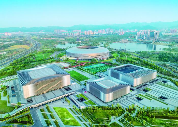 作為大運會開幕式舉辦地的東安湖體育公園,總建筑面積約32萬平方米,包含“一場三館”——4萬座的綜合運動場、1.8萬座的多功能體育館、5000座的游泳跳水館和綜合小球館。同時還承擔競技體操、游泳比賽及訓練場館等功能。